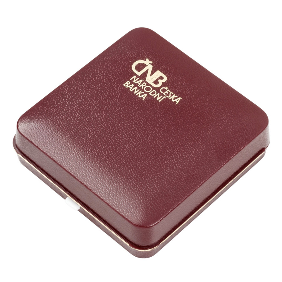 Mince je uložena v etui červené barvy se zlatým logem ČNB.
